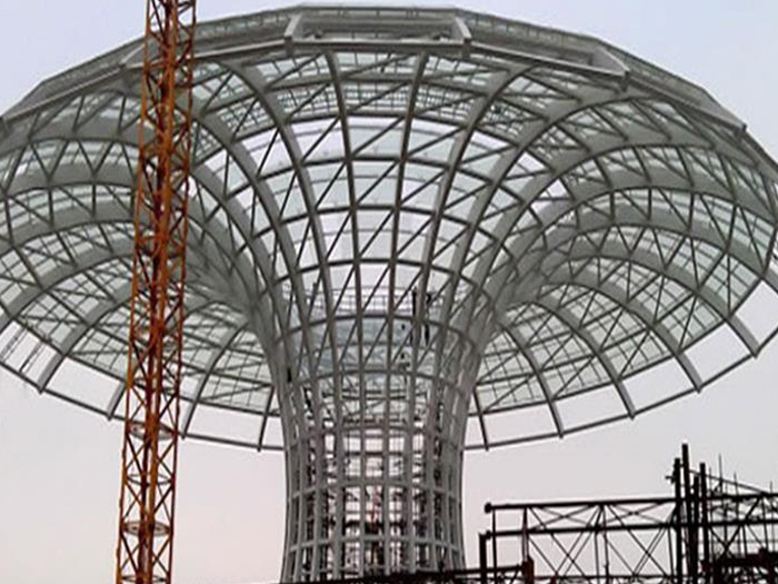 二、球形网架结构因其结构新颖,受力合理,自重轻、用钢量低等优点。如大型体育场馆球形乐陵螺栓球网架、公共场馆球形网架、电厂乐陵螺栓球网架、水泥工业球形网架、仓储物流球形网架、乐陵干煤棚工业球形网架、乐陵收费站乐陵加油站球形网架、展览中心、影剧院、商场、航站楼、候车厅、工厂乐陵车间、仓库、电视塔等球形螺栓球节点网架。国内球形网架结构主要分为:乐陵焊接球节点网架及螺栓球节点网架两种。螺栓球节点网架其构件工厂内加工量较大,现场安装便捷,适用于现场工期紧,乐陵施工条件、用电量受制约,网架形状复杂、乐陵杆件定位困难的异形结构。螺栓球节点球形网架系统基本由乐陵杆件、螺栓球、支撑支座等组成。按照节点形式可分为交叉乐陵桁架体系、四角锥体系、三角锥体系等。支撑方式多为固定支座支撑。对于大面积、大跨度及有特殊受力或伸缩要求的网架结构可采用橡胶支座、滑移支座、球铰支座等支撑形式,以满足结构自身的受力稳定、均衡,便于内力释放等设计要求。